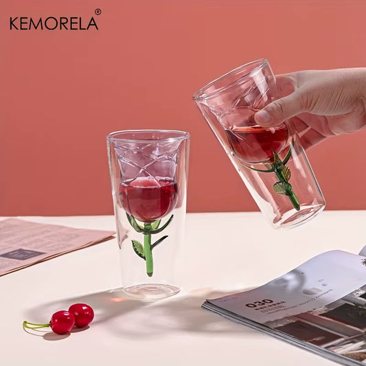 INS Double-Layer Glass Wine Glass Rose Shape Design Red Wine Glass Glass Juice Cup Suitable for Wedding Valentine'S Day